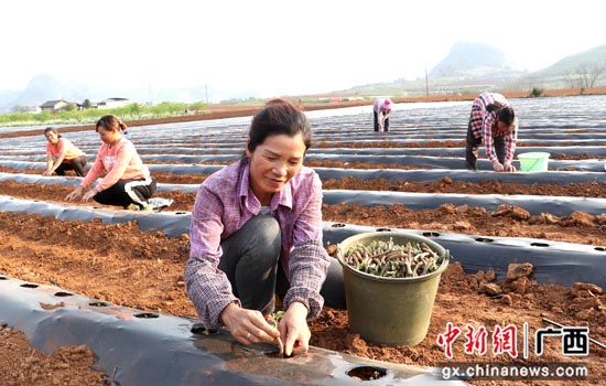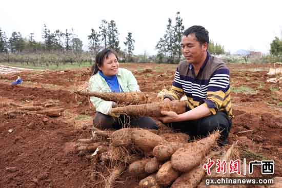 村民趁好天气抢收、抢种葛根、淮山。苏桂 摄
