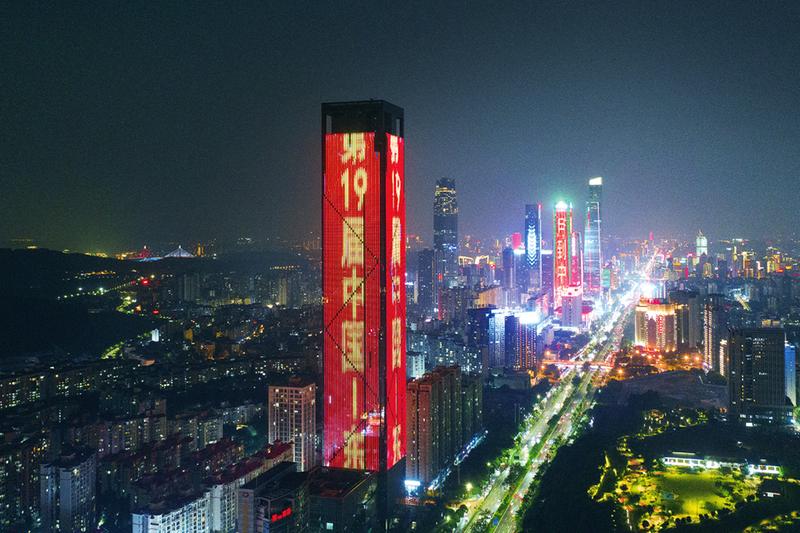 民族大道附近楼宇持续亮起璀璨灯光秀,喜迎盛会到来。本报记者 黄维业 摄