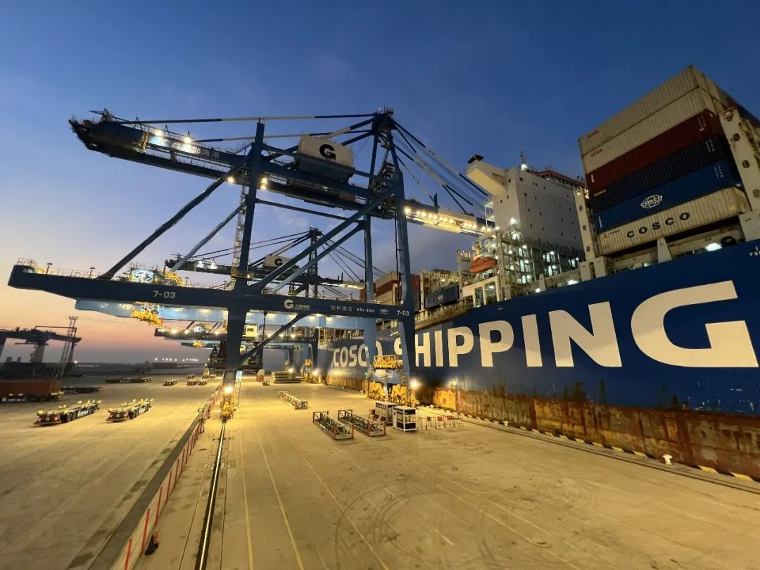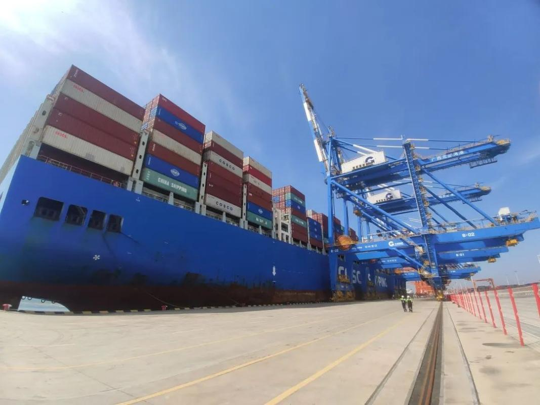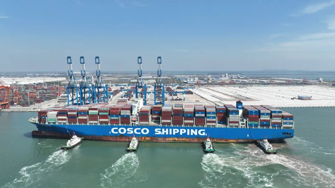 中远海运喜马拉雅轮靠泊钦州自动化码头。北部湾港集团供图