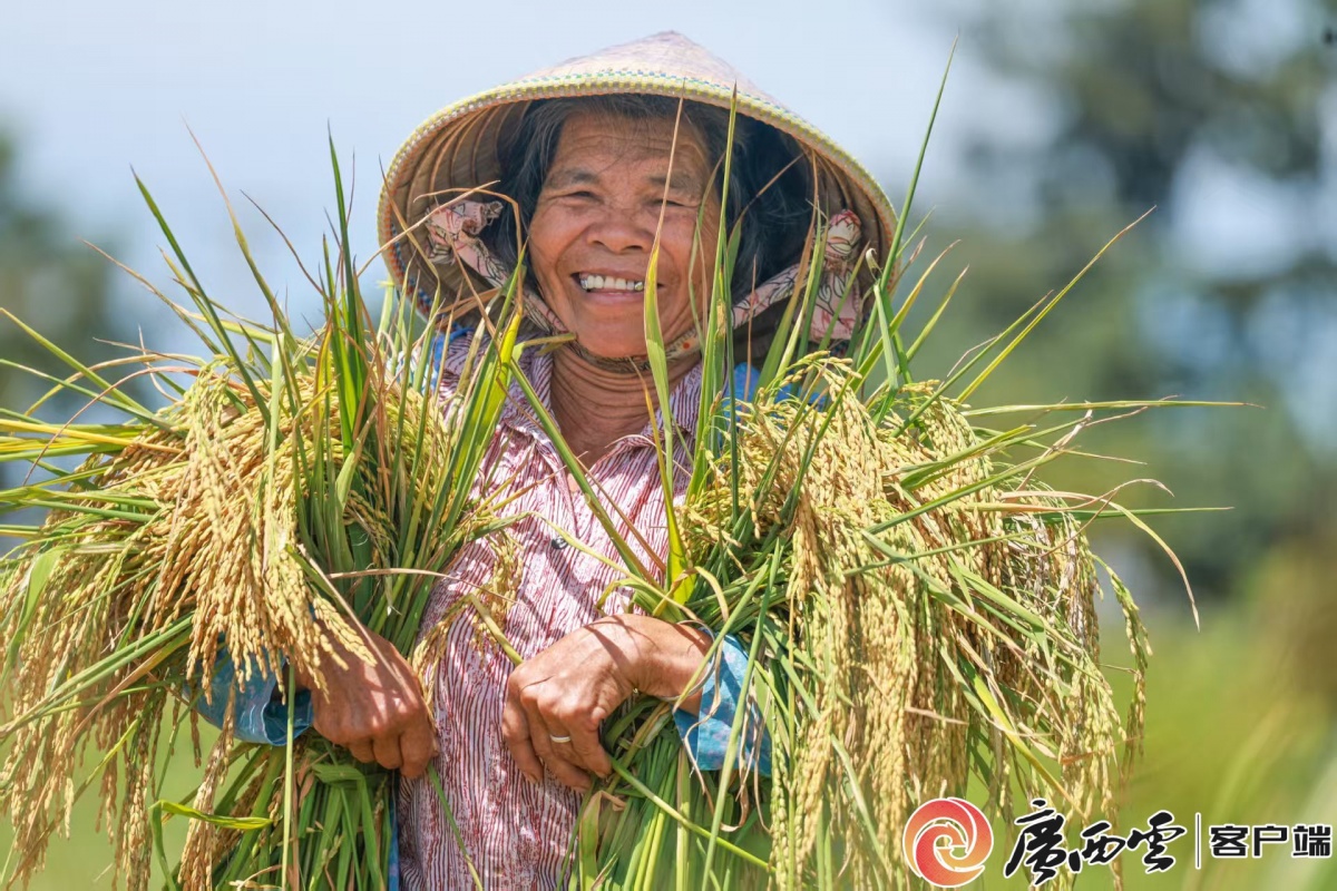 “这片耕地足足撂荒了20多年,今天终于看到它重新焕发生机!”近日,在北海市铁山港区营盘镇白龙社区螃蟹塘,村民陈发莲看着正在收获的金黄色杂优水稻喜不自胜。