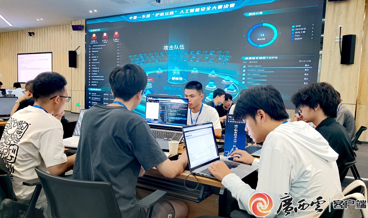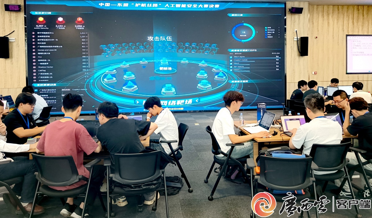 2025年中国—东盟“护航丝路”人工智能安全大赛实战攻防赛道决赛现场。
