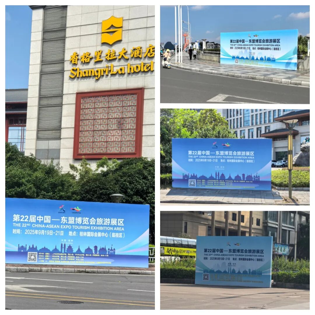东博会旅游展区是促进中国与东盟各国乃至世界各国文化旅游合作与交流的重要平台,也是桂林对外开放的重要窗口。街头巷尾的宣传画面既向广大市民、游客传递展会资讯,更成为连接展会与公众的重要纽带,让更多人提前感受这场国际旅游盛会的热烈氛围,共同期待9月19-21日盛装启幕的精彩时刻。