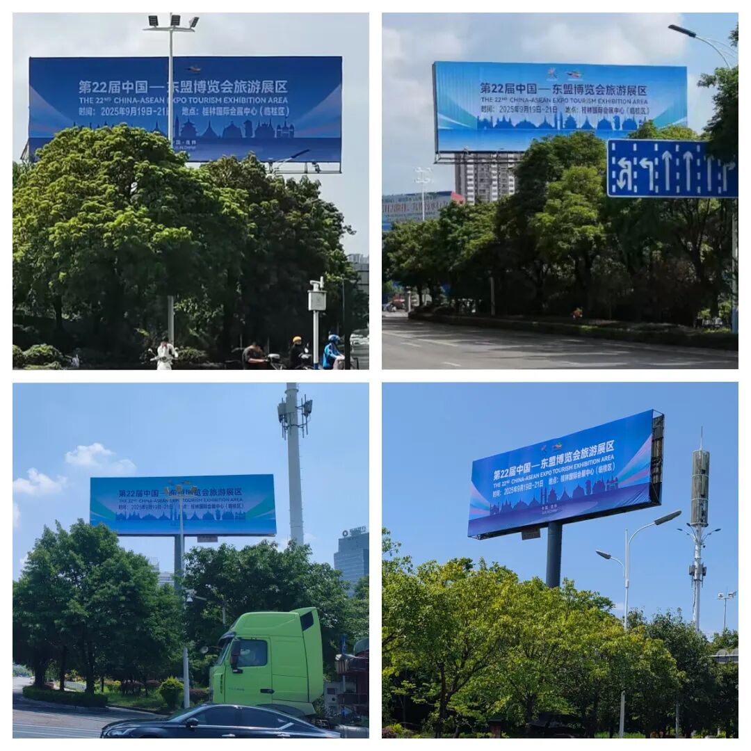 近日,一幅幅醒目的宣传桁架、精准投放的户外广告牌亮相桂林各城区重要路段,成为秋日街头一道亮丽的风景线。这些视觉冲击力十足的展示装置,正在为即将于9月19日开幕的第22届东博会旅游展区预热造势。