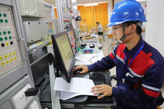 在电工赛场上,选手们身着专业工装,迅速拿起工具穿梭在配电箱与线路之间,剥线、接线、固定、检测等一系列动作行云流水。万用表的显示屏上,数值随着线路的连接不断跳动,每一次数值稳定在标准范围,都意味着一次精准的操作完成。他们时而俯身检查线路接口,时而抬头记录数据,额头渗出的汗珠来不及擦拭,眼神却始终紧盯设备,用专业与速度诠释着工业领域技能人才的过硬本领。