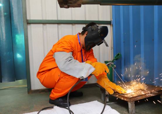 在焊工赛场上,弧光闪烁间映照着选手们坚毅的脸庞。防护面罩下,选手们手持焊枪稳稳对准焊接点,熔化的金属在焊缝处凝聚成均匀的焊道,每一次起弧、收弧都严格遵循规范,用高温与匠心“熔接”出工业制造的质量基石。