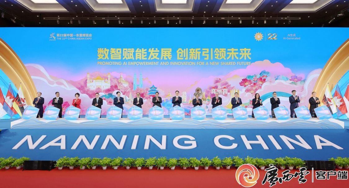 9月17日,以“数智赋能发展创新引领未来——以中国—东盟自贸区3.0版新机遇助建命运共同体”为主题的第22届中国—东盟博览会、中国—东盟商务与投资峰会在南宁开幕。国家副主席韩正宣布博览会开幕,并与嘉宾共同启幕。广西云-广西日报记者 黄克摄