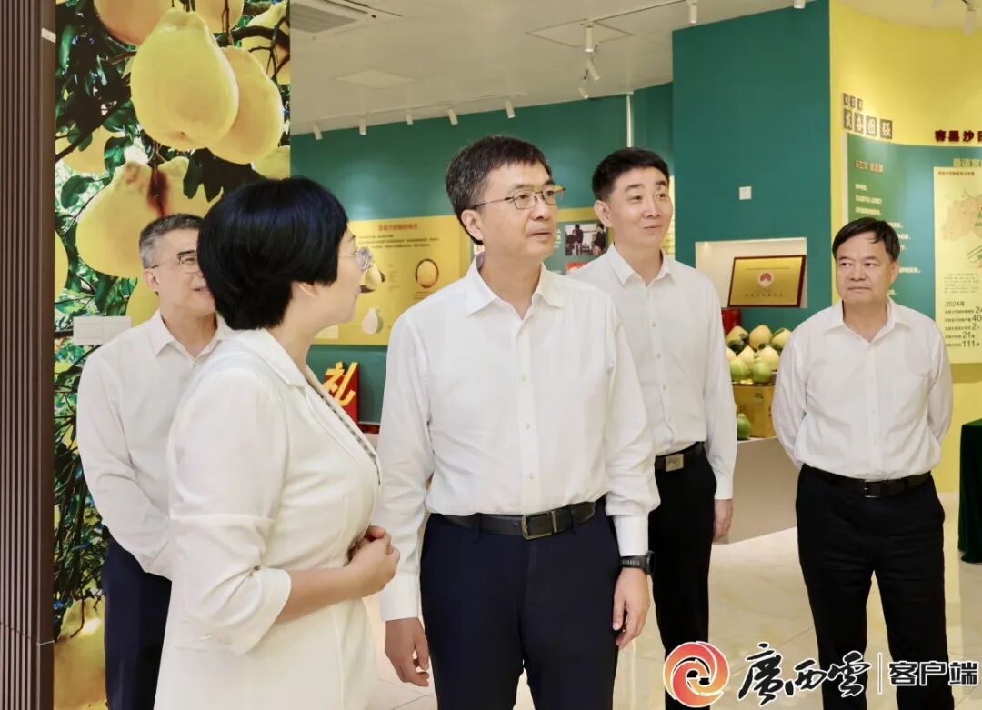 容县松山镇沙田村木兰塘屯是沙田柚的“发源地”。陈刚在木兰塘屯详细了解基层党建、乡村治理及乡村特色产业发展情况,要求继续加强党建引领,推动党建工作与产业发展同频共振、深度融合,发展壮大富民产业,推动一二三产业融合发展,不断提升乡村产业发展、乡村建设、乡村治理水平,扎实推进乡村全面振兴。陈刚还走进兴业县茗韵茶业有限公司生产车间和展销厅,详细了解智慧茶园建设、生产加工、市场营销等情况。当得知该企业是玉商回归企业,实行“公司+合作社+农户”发展模式,带动200多名当地群众就业时,陈刚给予肯定,勉励企业做优茶叶品质,进一步加大宣传和营销力度,提升产品附加值,带动更多群众就业增收。