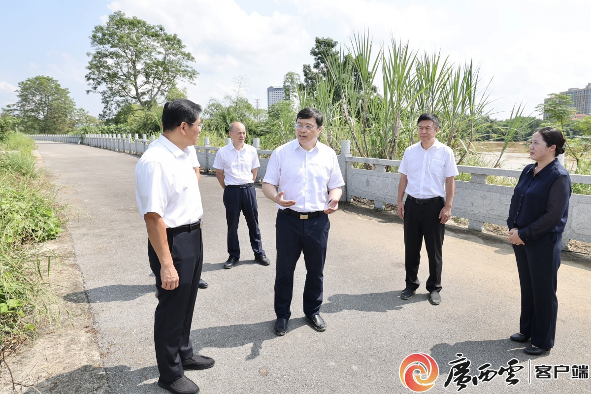 韦韬来到崇左市江州区教场防洪堤,察看水情,与各有关部门现场会商,研究崇左市城区防洪排涝基础设施规划建设,谋划进一步提升应对灾害的安全韧性能力。广西云-广西日报 记者 邓华 摄