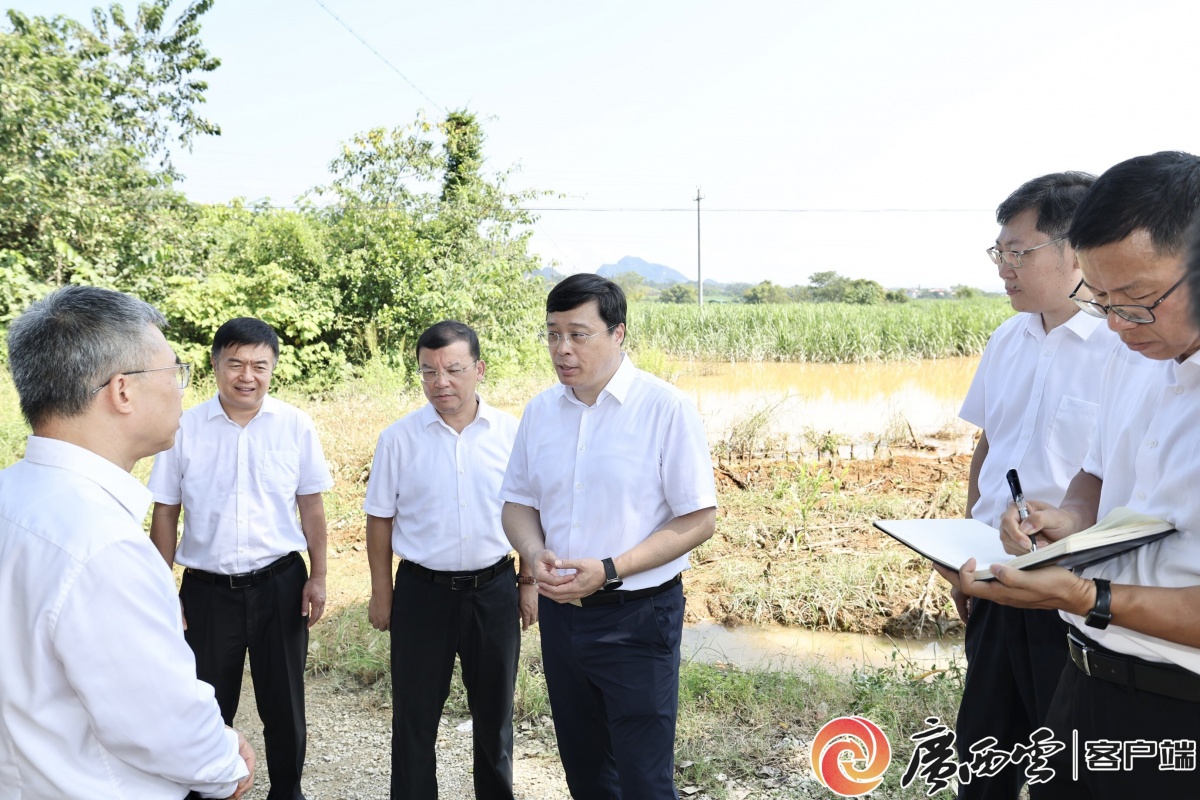 10月9日,自治区主席韦韬赶赴崇左市,调研灾后生产生活恢复工作情况。在龙州县龙州镇自清村新村屯甘蔗田,韦韬现场察看倒伏甘蔗和积水情况,听取农作物受灾情况汇报,要求有关部门进一步做好灾情核报工作。广西云-广西日报 记者 邓华摄
