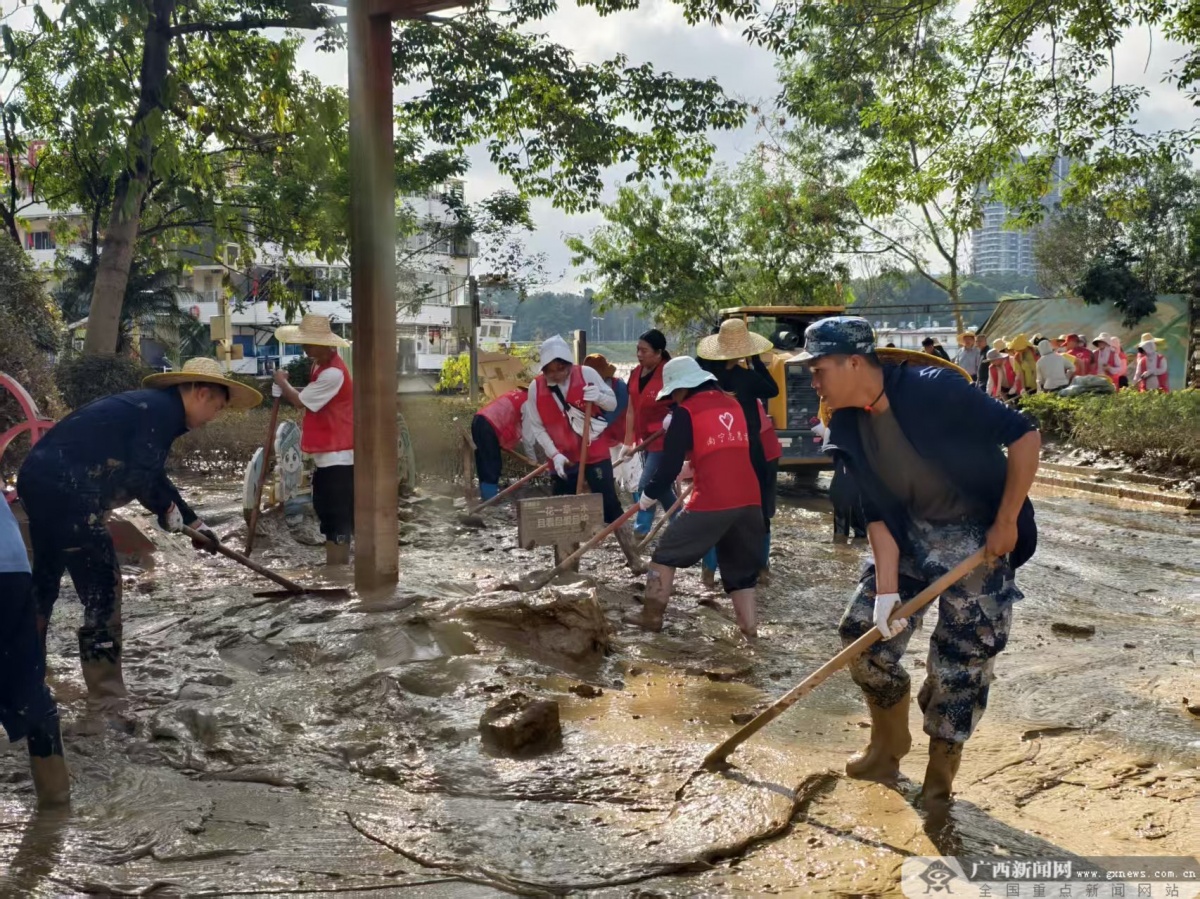 10月13日,邕江水退后,南宁市邕江沿岸公园开启了清淤大行动。街道、消防、公园管理、社区志愿者,以及前来支援的各单位力量,齐心协力投入清淤工作。