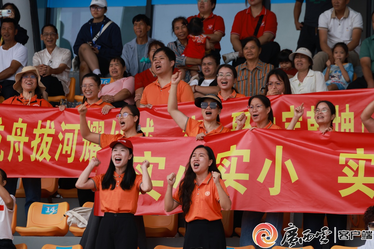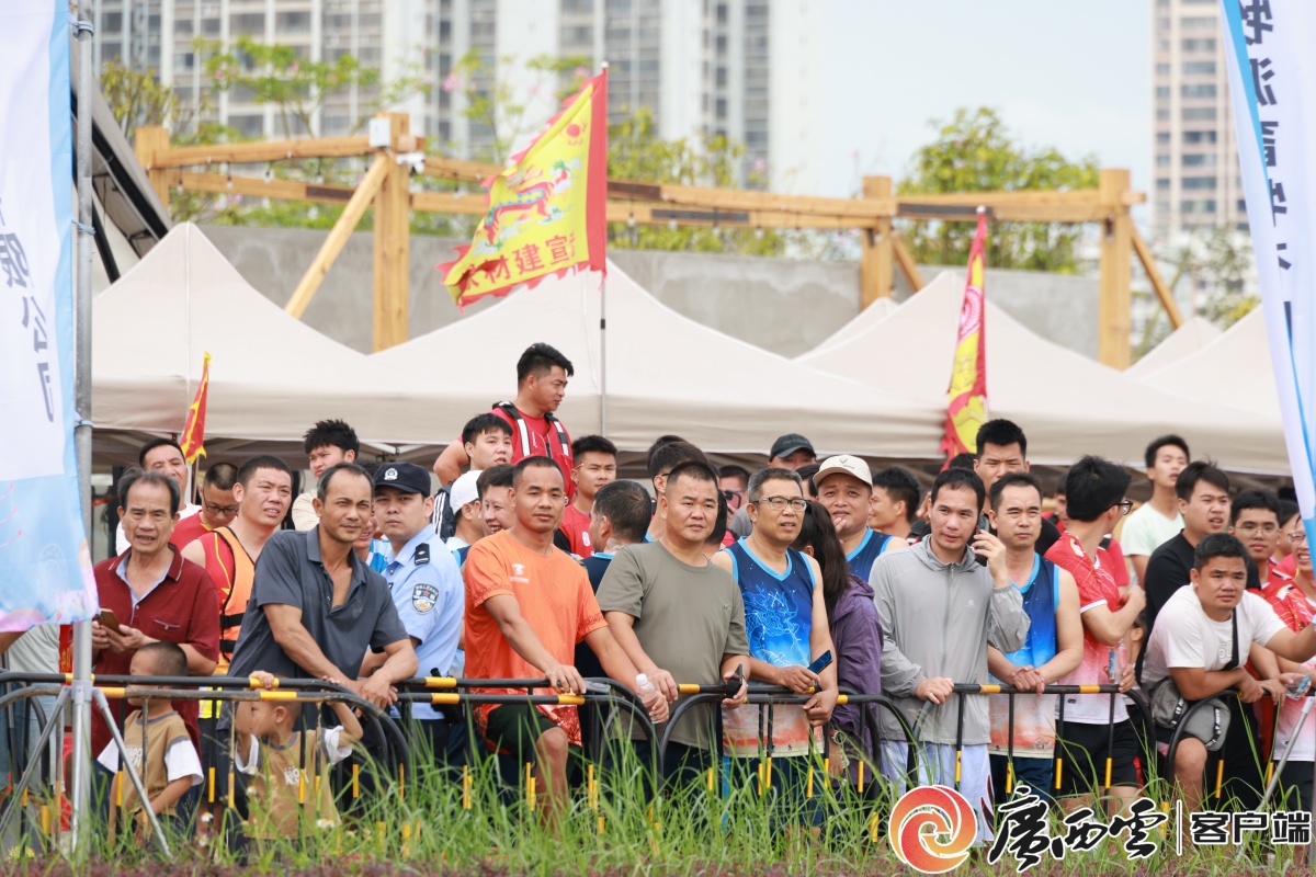 现场观众热情高涨。市民吕玉帆一早就来到现场:“我的家人在武宣实验小学龙舟队,我来给他加油,希望他们取得好成绩!”市民李道强信心满满:“我们是武宣县退役军人创业龙舟队(老兵联盟跑团)的拉拉队,我们要努力冲向冠军!”