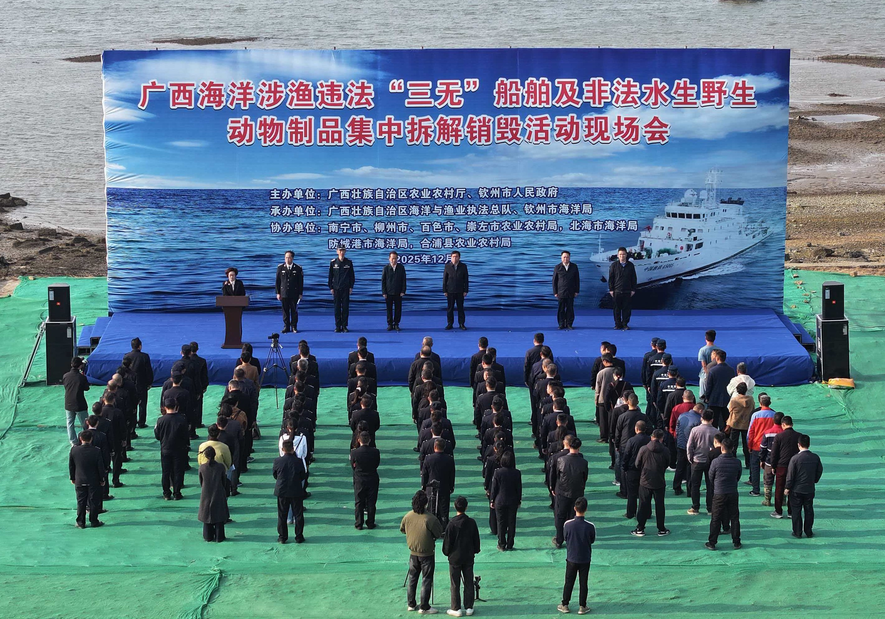 此次活动由广西壮族自治区农业农村厅、钦州市人民政府联合主办,广西壮族自治区海洋与渔业执法总队、钦州市海洋局共同承办。这次活动既是深化涉海涉渔综合管控的生动实践,也是渔业部门协同各级各单位坚决清理取缔涉渔违法“三无”船舶、严厉打击非法捕捞、非法交易信心与决心的集中彰显。