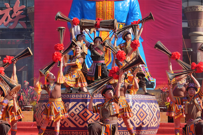 当天,瑶族同胞身穿节日盛装,手举幡旗伴随着礼乐依次入场,祈求风调雨顺、五谷丰登、国泰民安,传递着对美好生活的向往。《黄泥鼓韵》《花篮载福》《为中国盘王节干杯》等瑶族特色节目轮番登场,让现场观众沉浸式感受瑶族文化的独特魅力。随后,瑶族同胞与游客共同跳起民族团结舞,广场上瞬间变成欢乐的海洋,将活动气氛推向了高潮。
